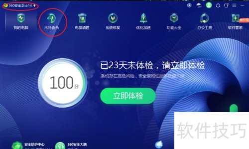 1、 启动应用,在功能区选择木马查杀标签。