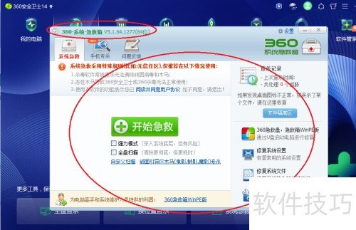 360安全卫士如何启用系统急救箱