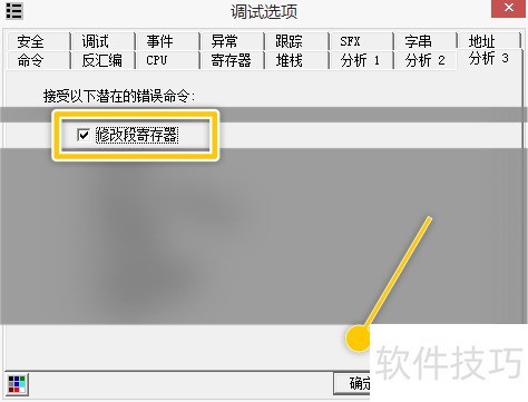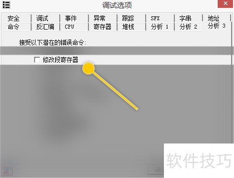 2、 在调试选项-分析3界面中,勾选修改段寄存器选项。