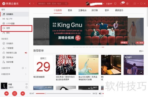 1、 首先开启电脑,打开网易云音乐,进入后点击视频。