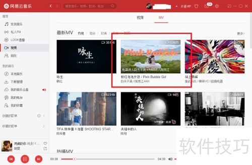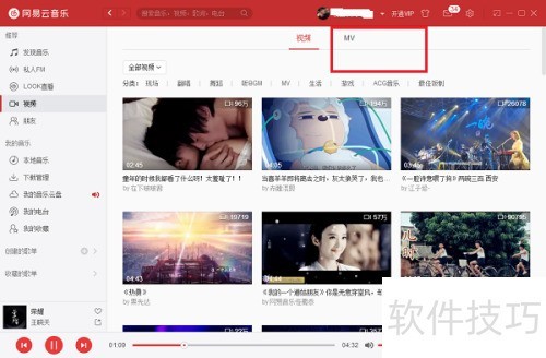 2、 进入电脑版网易云音乐视频后,点击MV选项。