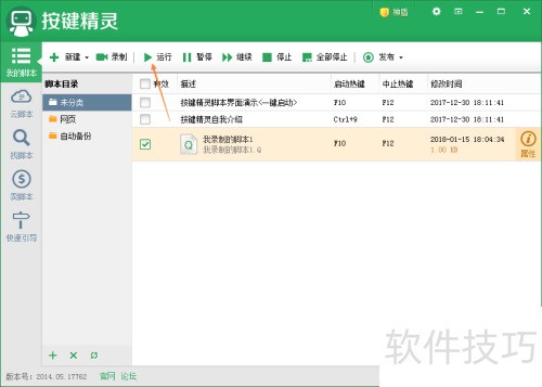 3、 运行方式见下图,停止操作,默认按键为F12。