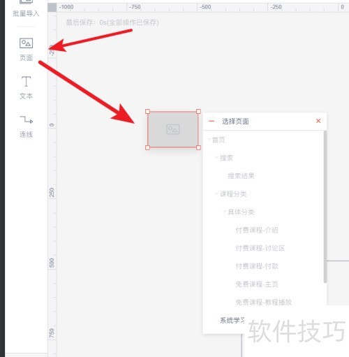 1、 把页面拖出后,就能选择墨刀文档里已制作好的页面了。