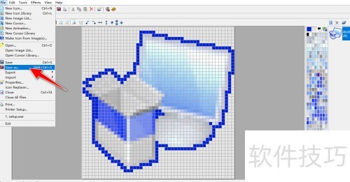6、 操作完成后,能把图标轮廓描边成蓝色,再通过File->Save As菜单,将图标导出至本地电脑。