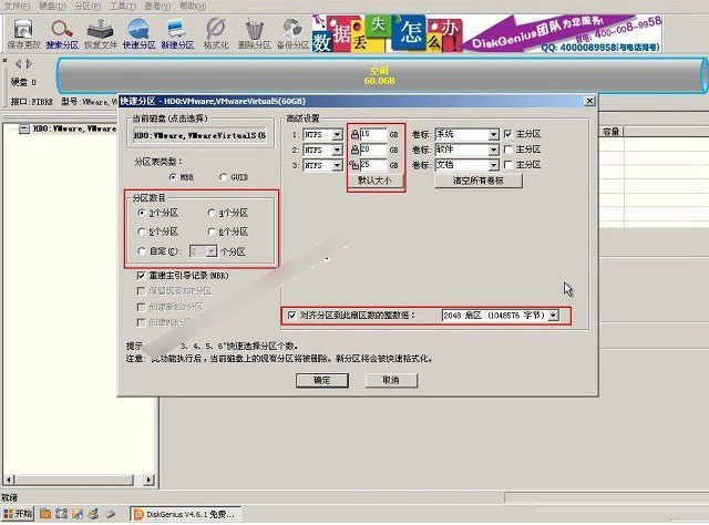 3、自定分区数量,勾选“重建MBR”,保留主分区;将系统盘设为≥30 GB,其余空白区自动补全容量。确认后即刻格式化,分区完毕。