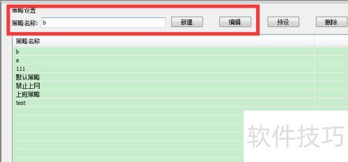 4、 软件预设了默认策略,适用于各类网络管理需求。下面,我们创建一个专门用于监控内容的新策略b,并进行编辑。