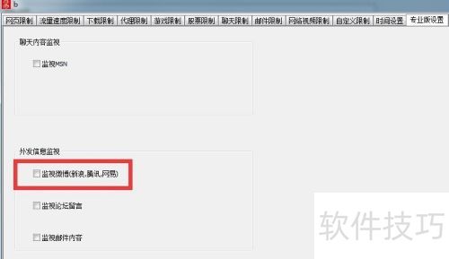 5、 随后进入软件功能选项卡界面,需找到专业版设置。此处有多个内容监视功能,仅勾选监视即可。