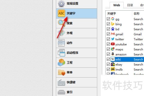 3、 在弹出的界面中,点击ABC关键字。
