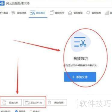 3、 把要剪辑的音频加入软件,点击添加文件按钮,在软件内部打开音频文件。