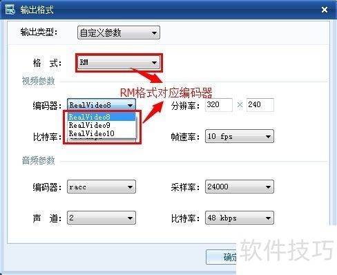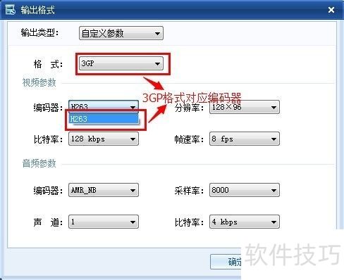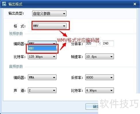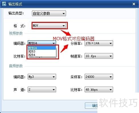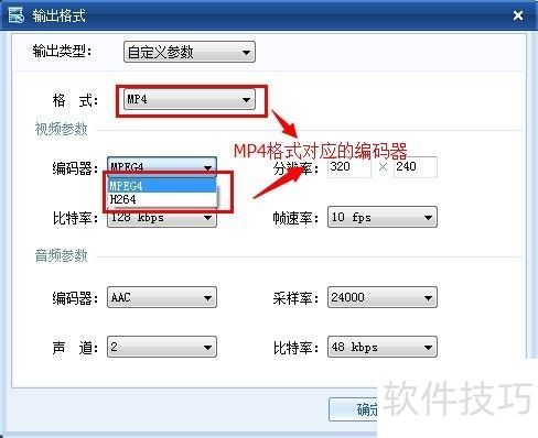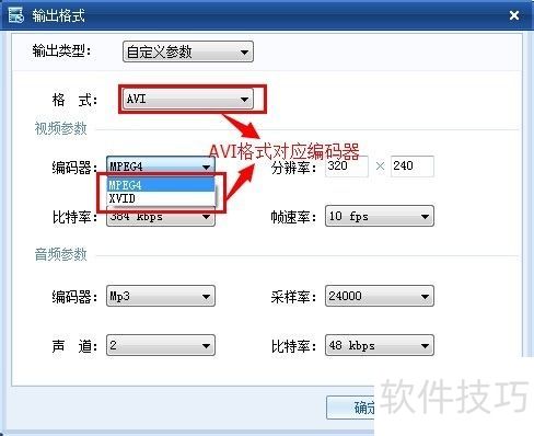 11、 输出格式窗口中,编码器与格式在视频参数选项里存在对应关系。