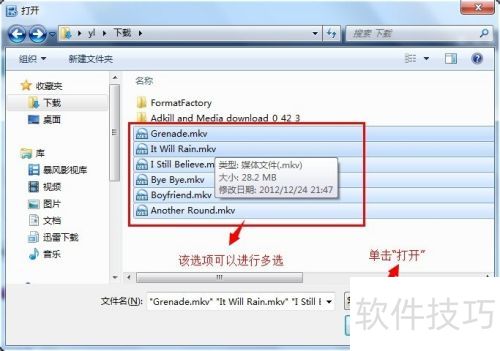 2、 打开窗口,选择需转换的视频文件(可多选),选好后点击打开(O)。