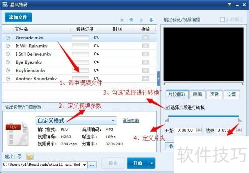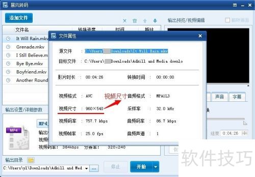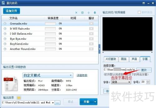 24、 完成输出设置与详细参数调整后,点击选择输出路径按钮,指定转码视频的保存位置。