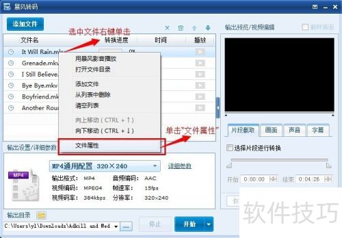 20、 如何查看原视频分辨率?选中添加文件里的视频,右键选择文件属性即可。