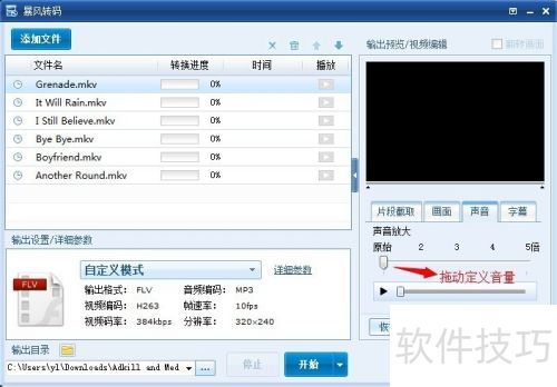 44、 通过鼠标拖动来设定音量大小,推荐采用原始音量。