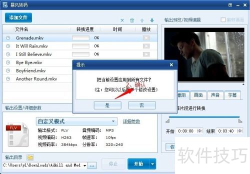 49、 若对所有视频进行相同操作,点击应用到所有视频,出现提示窗后,点击是(Y)。