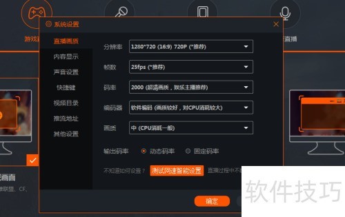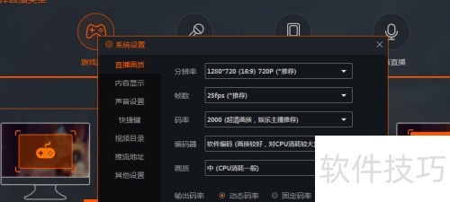 2、 接着进入系统设置,点击左侧直播画质选项,参照图示操作。