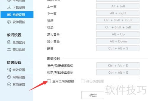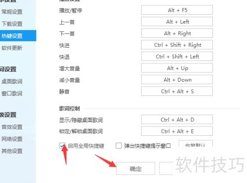 6、 启用全局快捷键选项后,点击确定保存设置。