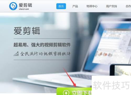 2、 打开爱剪辑官网后,点击立即下载按钮进行下载。