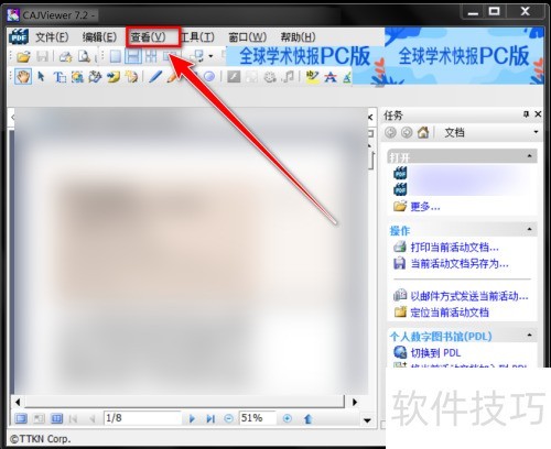 3、 打开文档,点击菜单栏中的查看选项。