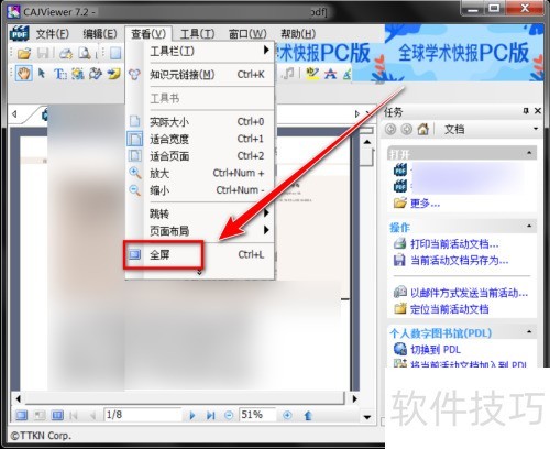 4、 从下拉菜单里,选择全屏选项。