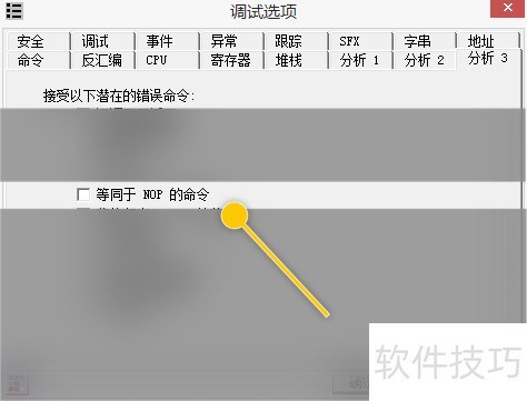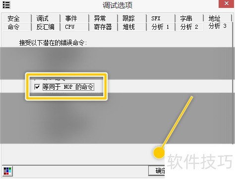 2、 在调试选项-分析3界面中,勾选等同于NOP的命令选项。