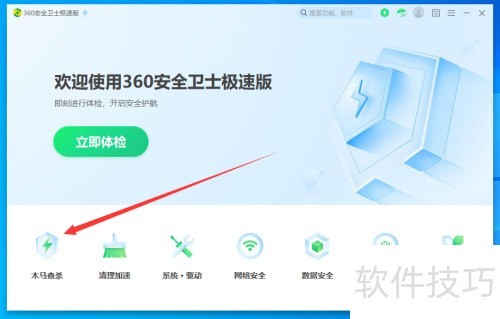 2、 打开360安全卫士,点击左侧下方的木马查杀功能进入。