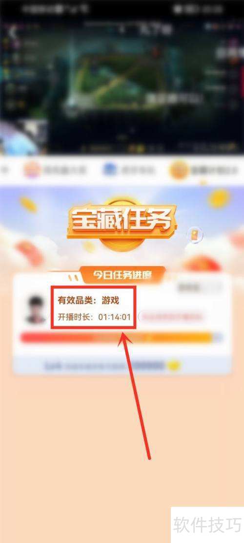 3、 进入宝藏任务界面,可查看主播直播时长。