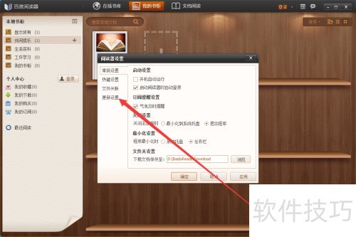 2、 打开网络阅读器,点击右上角设置进入。