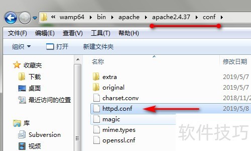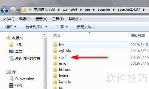 1、 定位到Apache安装目录中的conf文件夹。