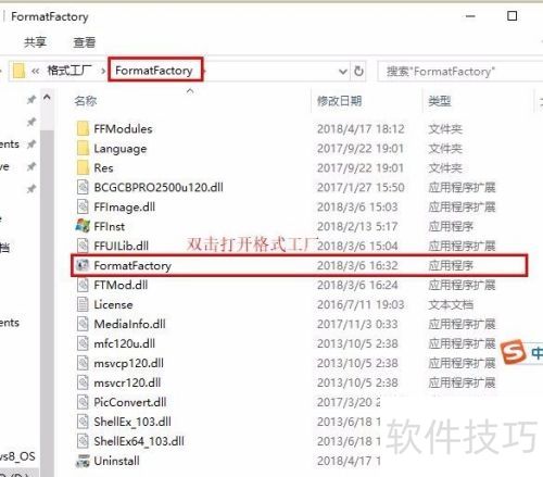 8、 也可在格式工厂文件夹中,打开FormatFactory文件夹,找到应用图标,双击开启。