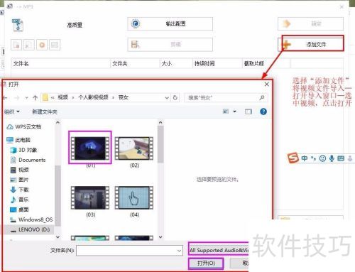 9、 点击音频-MP3(按需选择格式)-添加文件,导入要分离音频的视频,然后点击确定。