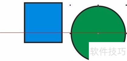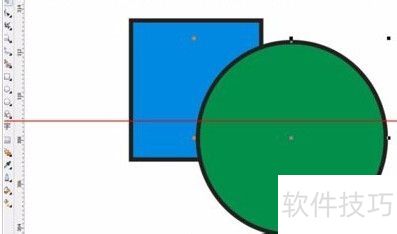4、 使用选择工具将两个图形移至重叠,可见圆形遮挡矩形,这由图层顺序决定。