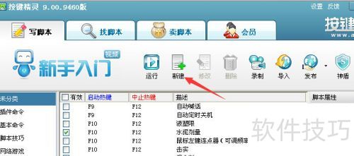 1、 先开启按键精灵,然后新建一个脚本文件。
