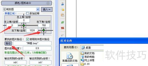 6、 在屏幕区域输入目标坐标,点击路径选取刚保存的图片(此步骤不能错,否则引用位置不对,会导致无法找到)。