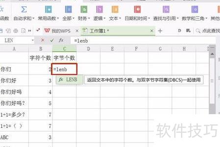 在B2单元格输入=len后回车,或从下方选项中双击选择=len()。