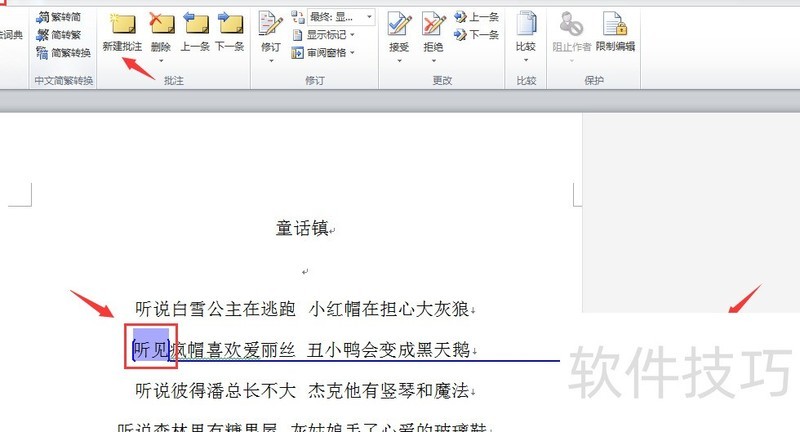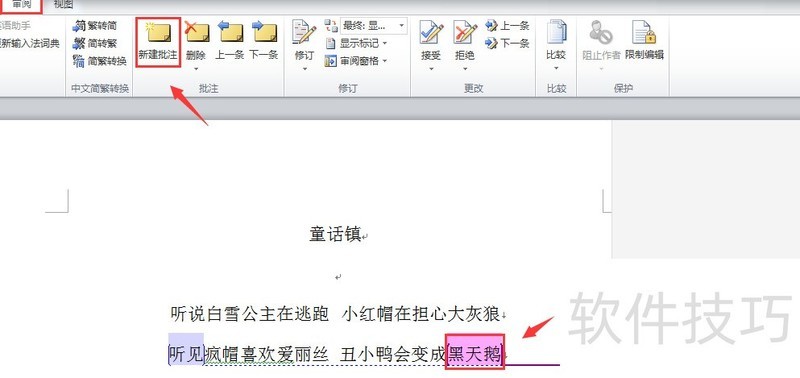 选中需注释的文字,在审阅选项卡中点击新建批注,输入批注内容即可。