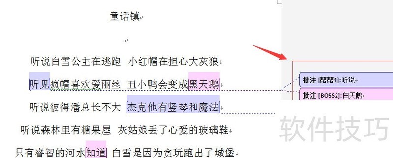 修改用户名或多人批注后,系统将用不同颜色区分显示。