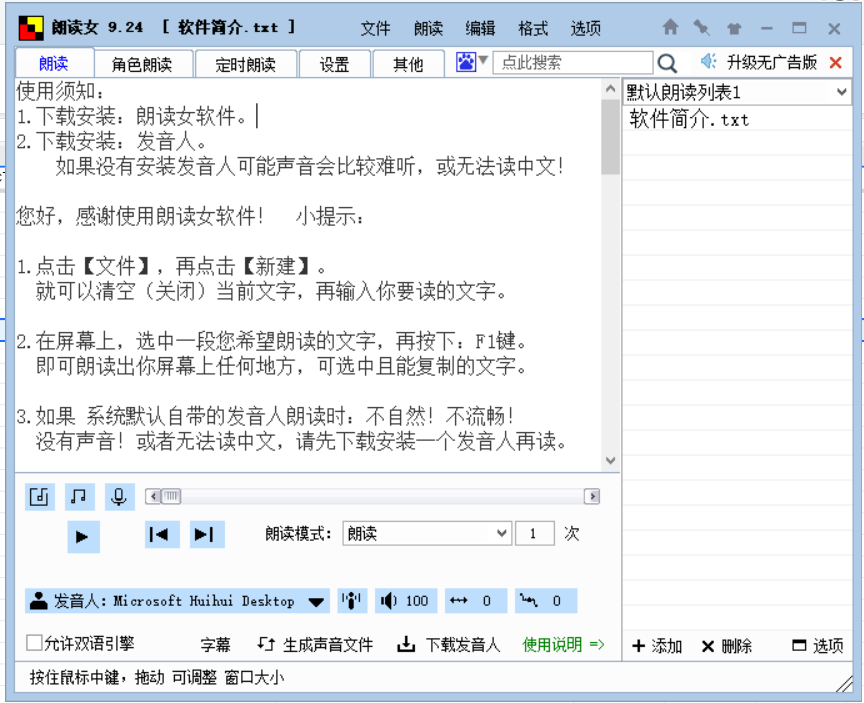1、启动朗读女应用。