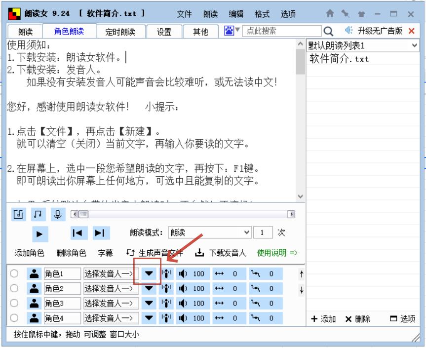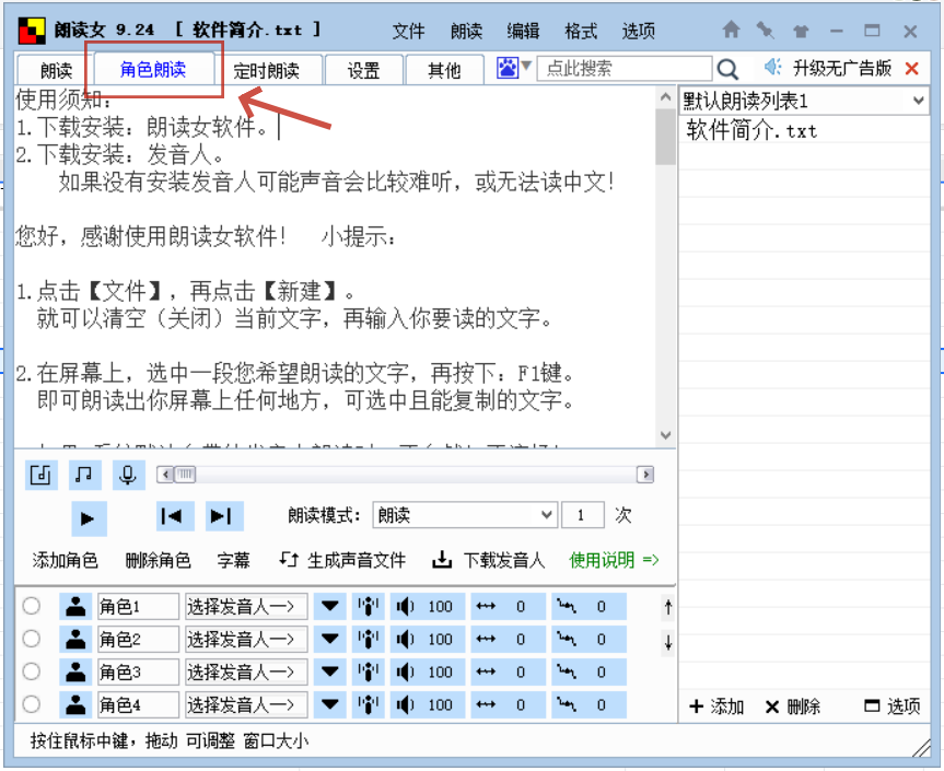 2、然后点击上方“角色朗读”。