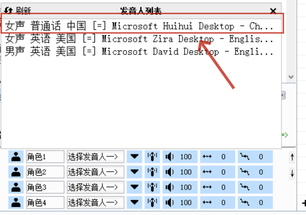 4、点击之后可看到发音人列表,选择第一个女生普通话。