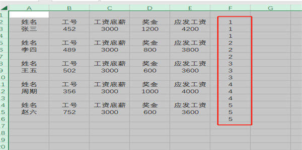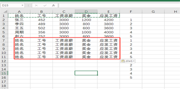 3、复制表头:再把工资表头复制一遍,确保与人员信息数量一致。