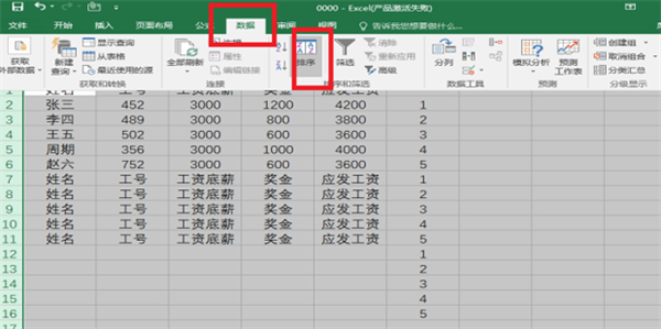4、全选排序:全选数据,点击“数据”选项,进行排序。