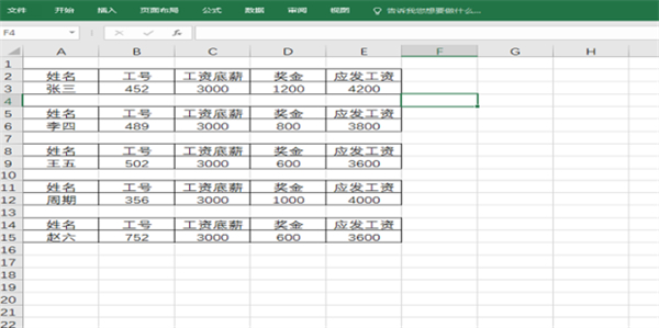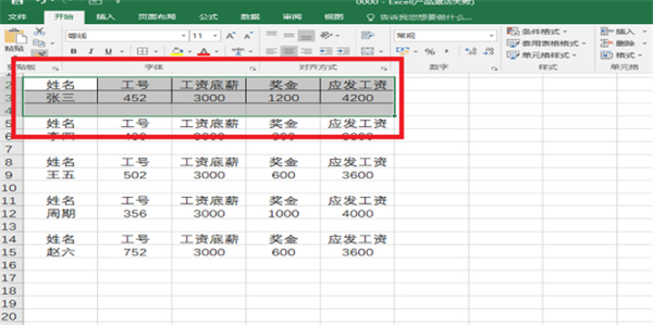 10、完成工资条制作:用格式刷刷完后,工资条制作完成。
