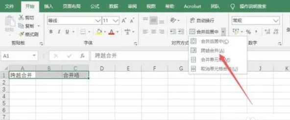 点击 “开始”选项卡 → “对齐方式”组 → “合并后居中” 右侧的下拉箭头。