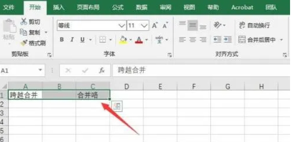 从下拉菜单中选择 “合并单元格”(或直接按快捷键 Alt+H+M+M)。