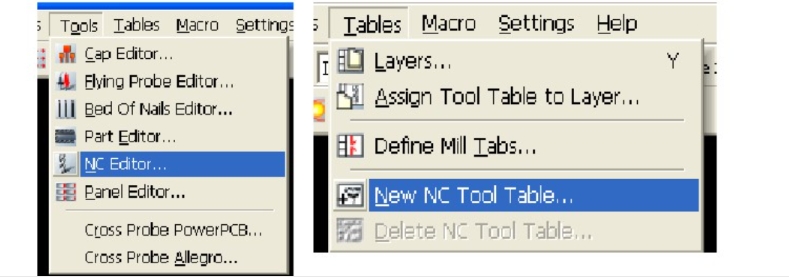 3、进入到NC编状态,建立一个新的空钻孔表。