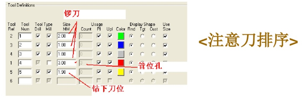 6、打开钻孔表把管位孔径改成与MI一致,并增加锣刀刀径或钻下刀位刀径。