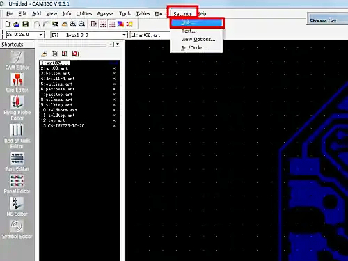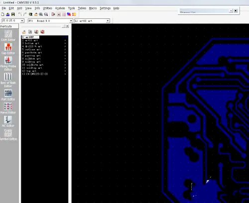 1、首先在cam350软件中导入板子的生产文件。