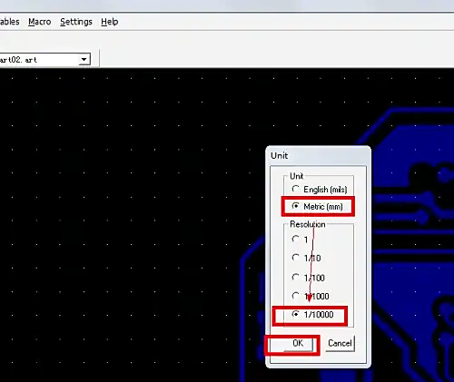 3、接着在弹出来的窗口中选择公制metric,操作的最小单位选择最小单位这里是1/10000,点击确定。