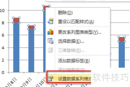 右键点击调出菜单,选择设置数据系列格式进行配置。